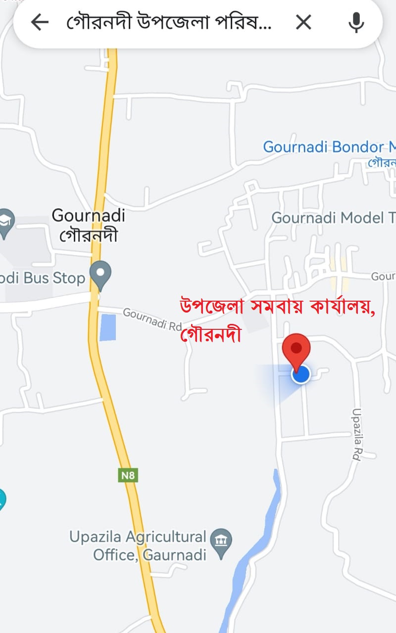 ঢাকা বরিশাল হাইওয়ের গৌরনদী ষ্টেশন থেকে ৫০০ মিটার ভিতরে গৌরনদী উপজেলা পরিষদ এর সম্প্রসারিত প্রশাসনিক ভবনের তৃতীয় তলায় উপজেলা সমবায় কার্যালয়, গৌরনদী, বরিশাল।